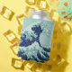 Trata-se de um desenho de ondas marítimas extremas azuis, cianas e aquamarinas com espuma e spray, baseado no trabalho de Katsushiki Hokusai (1760-1849).