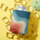 Ilustração de padrão geométrico das ondas retrorreflectoras com listras vermelhas, laranja, azuis e turquesas
