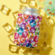 Padrão multicolorido sem costura com crânios e corações em fundo branco. Ilustração do vetor EPS 10. Contém efeitos de transparência. © e ® Bigstock® - Todos os direitos reservados.