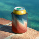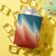 Ilustração geométrica de padrão de estilo retrorreflector chevron com decoração de listras vermelhas, laranja, azuis e turquesas. Você pode adicionar seu nome ou monograma facilmente para personalizá-lo.