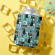 Padrão colorido de Meio século com gata preta, estrelas pretas e decoração colorida (azul, branca, rosa) de cubos em fundo turquesa para cada amante de gato, mãe de gato e pai de gato.