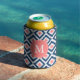 Porta-lata Padrão de Ikat Azul e Coral Monograma