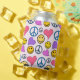 Paz, Amor, Ria, Sorria, Viva, Padrão. Com corações roxos e cor-de-rosa, rostos amarelos sorridentes e felizes, e símbolo azul de paz com um fundo rosa claro. Ajudando-o a ficar alegre, motivado, encorajador, inspiração, a ter um dia de excelente. Surge com positividade. Excelente para crianças, meninas, melhores amigos, esposa, namorada, irmãs, tia, avós, mães, filhos e muito mais.