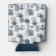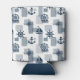 Design marítimo sem costura, com embarcação à vela, bússola, âncora e decoração das rodas de vela em fundo geométrico azul e branco