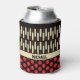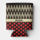 Bolas de críquete vermelhas sobre fundo preto criam um padrão surpreendente tanto na frente quanto na parte de trás desta lata de críquete mais fria. Na frente, os morcegos de críquete também são usados em um padrão complementar, e há uma ampla faixa para você personalizar com um nome ou outro texto a preto.