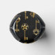 Padrão perfeito de chaves antigas, douradas e silhuetas em fundo preto.