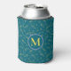 Elegante pode resfriar com seu monograma e uma ilustração de morango desenhada à mão de na moda em lilac pastel e amarelo em um fundo verde-marinho. A cor de fundo pode ser alterada para qualquer cor que você quiser, clicando no botão 'personalizar mais'. Se você quiser um design com cores diferentes ou em produtos correspondentes, entre em contato conosco em aquipoppy@icloud.com