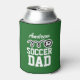Os resfriadores personalizados para pai de futebol. Design de bola de futebol com nome personalizado. Alça de bebida bonita com bola branca. Uma garrafa e um refrigerador divertidos para pais ou treinadores. Faça o seu para pai desportivo, pai, tio, avô, padrasto, irmão, filho, mãe, irmã, esposa, tia, filha, etc. A cor de fundo personalizável é verde. Ideia de presente confortável para Festa de aniversário de temas desportivos, churrasco, torneio, etc. Mantém a cerveja e outras bebidas legal. Impressão de conforto duplo. Faça o seu partido a favor dos amigos e da família. Acessórios de futebol engraçados.
