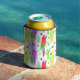 Porta-lata Papagaios coloridos, padrão desenhado à mão.