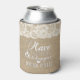 Esta adorável cerveja de casamento personalizada contém a frase "Para ter e segurar para manter seu frio de beber" em um fundo de aparência de burlap. Personalize o outro lado com suas iniciais, nomes e data de casamento.