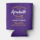 Adicione um toque personalizado a decorações de festas de formatura de faculdade ou segundo grau com resfriadores roxos e dourados. Design apresenta um fundo roxo, boné conselho amarelo de argamassa, tipografia na moda moderna, caligrafia de script de estilo manuscrito e uma mensagem personalizável lendo "Parabéns para nosso Formando". O texto na parte inferior inclui o ano da aula, o nome da escola e uma linha opcional para o grau, a honra ou outras informações. Todo texto é simples de personalizar. Estes favores elegantes fazem uma ideia de bebida para comemoração de na moda. Felicidades!