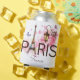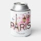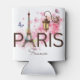 Belo pode resfriar que exibe a palavra Paris, França com a letra "A" em Paris, formada pela Torre Eiffel, há uma linda lâmpada de colheita, borboletas, e flores.