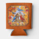 Um pássaro azul, jay azul, frango, nuthatch e cardeal se reúnem num alimentador de pássaros para um banquete de outono, em um fundo cor de laranja cair. Trabalho de arte criado de uma pintura original do artista da vida selvagem Crista S. Forest.