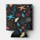 Adicione diversão no verão com a vida oceânica. Conchas, Starfish e Seacavalo sobre fundo preto com vermelho, laranja e azul.