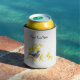 Este refrigerador de latas ou garrafas tem um pássaro vermelho e azul sentado num galho com flores amarelas vibrantes num olhar texturizado que fundo. Personalize seu texto na frente e atrás com o modelo.