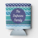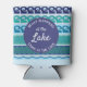 Uma diversão pode resfriar com um fundo de onda e a mensagem, "O que acontece no lago... fica no lago" Adicione o nome da família, o nome do casal, o nome do lago ou o nome do barco para personalização.