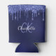 Um fundo azul-marinho com um elegante efeito de pingos de brilho falsos, parecido com gotejamento de tinta. A cor azul é irregular. Personalize e adicione um nome e iniciais de monograma. O nome é escrito em branco com uma fonte manuscrita moderna.