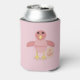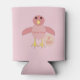 Este incrível pode resfriar apresenta um desenho fofo de um pintinho rosa. O pintinho tem uma barriga rosa pálida e asas rosa-escuras e cabeça com um bico e pés amarelos. Ao lado do pintinho está um ovo pequeno. Há texto personalizável para que você possa personalizar este design com a idade e o nome do destinatário.