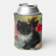 Consegue o Cooler com um gatinho preto e branco! Esse tuxedo fofo se posou entre as flores vermelhas num cobertor azul. Um presente magnífico para amantes de gatos e entusiastas de arte vitorianos!