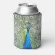 Mantenha o seu pop de refrigerante e outras bebidas frias com esta tendência, o refrigerador isolado que apresenta a foto de um Pavão azul com uma plumagem de penas colorida.