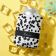 Um padrão branco e preto de pele de cão dalmata. Uma faixa preta com pontos brancos e texto passa. O texto pode ser personalizado.