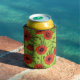 Porta-lata Poppies, vermelhos e verdes no verde limão