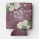 Modelos de Cooler / koozies para Chá de Panela de Casamento - Estilo Elegante, Potes de Vidro, Flores de Hortênsia e Luzes de Corda em Fundo de Tecido Floral Vermelho Borgonha.