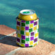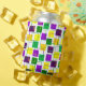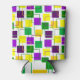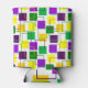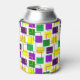 Este pode ser mais frio tem um design geométrico de quadrados em roxo, amarelo e verde espalhados com seus contornos.