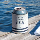 Saindo para uma festa de praia, cruzeiro ou viagem de barco? Mantenha sua bebida favorita legal em nosso estilo náutico. O marinho de Verão e o design branco apresentam a citação "I Need Vitamin Sea", em marinho, com uma ilustração de âncora e faixas de marinho náuticas.