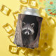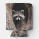 Um jovem guaxinim bonito olhando para fora do dentro da árvore grande.