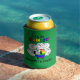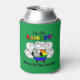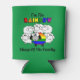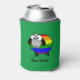 Este Rainbow Pride Can Cooler apresenta um bando de ovelhas brancas. Em frente ao bando há uma ovelha singular com as cores da bandeira LGBTQ. O texto diz: "Eu sou a ovelha do RAINBOW da família." Na parte de trás do Can Cooler há uma imagem da Ovelha Arco-Íris e uma imagem de texto personalizado.