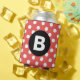 Porta-lata Red Polka Dot Pattern Black Monogram