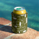 Este resfriador tem uma design moderna do século médio de retângulos abertos e fechados em branco num campo verde-camo.