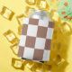 Os quadrados de cheques são um presente de retrato geométrico branco-marrom para qualquer um. Legal padrão quadrado geométrico verificado por retrô. Azulejo Vintage mousse castanho e checador branco moderno.