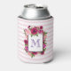 Consegue resfriar personalizado com uma letra de monograma. Projetado com um buquê floral composto por rosas de rosa claro e papoilas cor-de-rosa escuras com muitas folhas verdes e peludas. Um quadro em camadas acima para colocar seu dentro de texto personalizado. O fundo é um padrão de listras rosa-macio.