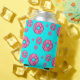 Rosquinhas cor-de-rosa sobre fundo azul.