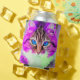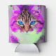 Gato doméstico de cor clara com púrpuras e pinks. Olhos digitalmente azuis para um olhar intrigante e gelado.