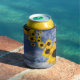 Nunca mais perder sua bebida! Personalizado pode resfriar com flores amarelas surpreendentemente realistas. perfeito tomador de bebidas de verão. Flores ouros realísticas amarelas do sol que sopram através de um céu Cornish é um design original de 2 peças originais. Os girassóis foram pintados à mão em desenhos digitais, e colocados sobre uma fotografia original de um céu de verão na Cornualha. Tipografia negra.