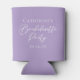 Este lindo cooler para latas de festa de solteira lilás roxo apresenta letra cursiva branca clássica para uma noiva que terá um evento sofisticado com suas damas de honra. Presentes de dama de honra roxo pastel minimalista e chic, presentes personalizados.