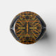 These cool and fun looking diagonal, horizontal and vertical thin line stripes representing pasta noodle sticks are colored in yummy cheesy yellow and orange on top of a dark black background color that also has orange polka dots scattered throughout.