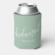 Esta elegante dama de honra pode resfriar numa cor verde macia e empoeirada de menta apresenta texto moderno, perfeito para celebrar seu dia especial no estilo. Personalizável com o nome de cada dama de honra, este design elegante faz um presente pensativo e funcional para a sua festa noiva. Ideal para festividades do dia do casamento, festas de solteira e chás de panela, este refrigerador na moda pode manter as bebidas frias enquanto adiciona um toque pessoal.
