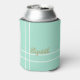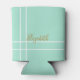 This simple mint green and white personalized can cooler has minimalist solid color blocks and a gold editable name. Use these to personalize for bridal parties, birthdays, or summer party return gifts. Cute and useful, too!