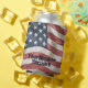 Celebre os EUA com um refrigerador de bebidas decorado com uma bandeira vermelha, branca e azul. Uma "Velha Glória" com estrelas desbotadas e listras dá a esta design um olhar retrô. Você pode personalizá-lo facilmente com seu texto ou nome clicando em personalizá-lo. A personalização pode ser excluída se você preferir apenas o sinalizador.