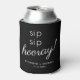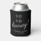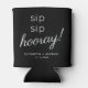 Dê um brinde de casamento e um presente de lembrança divertida para os seus convidados de casamento com esta lata negra personalizada. "Sip Sip Hooray" é escrito em mínimo moderno tipografia branca e roteiro branco. Adicione seus primeiros nomes e a data do casamento embaixo.