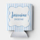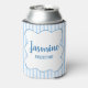 Keep drinks cool and spirits high with this “Snow in Love” can cooler — perfect for a cozy winter bachelorette celebration. The design features frosty blue stripes, a wavy frame, handwritten-style font, and delicate snowflake accents. Personalize one side with the bride-to-be’s name and the other with each guest’s name and role for a fun, coordinated party detail that fits ski trips, cabin weekends, or snowy getaways.