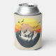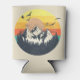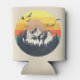 Ilustração retrógrada de montanhas em design de pôr do sol com picos de montanha, pássaros, sol, pinheiros decoração de fundo colorido do estilo retrô listrado