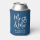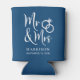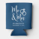 Dê uma torrada de casamento e seus convidados de casamento uma lembrança divertida mantendo seu dia especial com este azul clássico personalizado pode resfriar com "Sr. & Sra." escrito em um grande roteiro branco e uma ilustração de dois anéis de casamento juntos. Adicione seu nome e data do casamento abaixo.