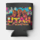 Consegue resfriar do estado de Utah, EUA apresentando um grande script UTAH em cor-de-rosa amarelo, em frente ao Vale do Monumento abstrato e montanhas Wasatch.