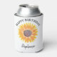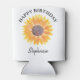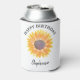 Esta festa de aniversário feliz Can Cooler é decorada com um girassol amarelo. Facilmente personalizável. Original Watercolor © Michele Davies.