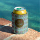 Um padrão de pranchas de surf em azul, com um monograma em círculo personalizado (nome e iniciais)... legal para bares ou festas do estilo surf ou decoração de praia
